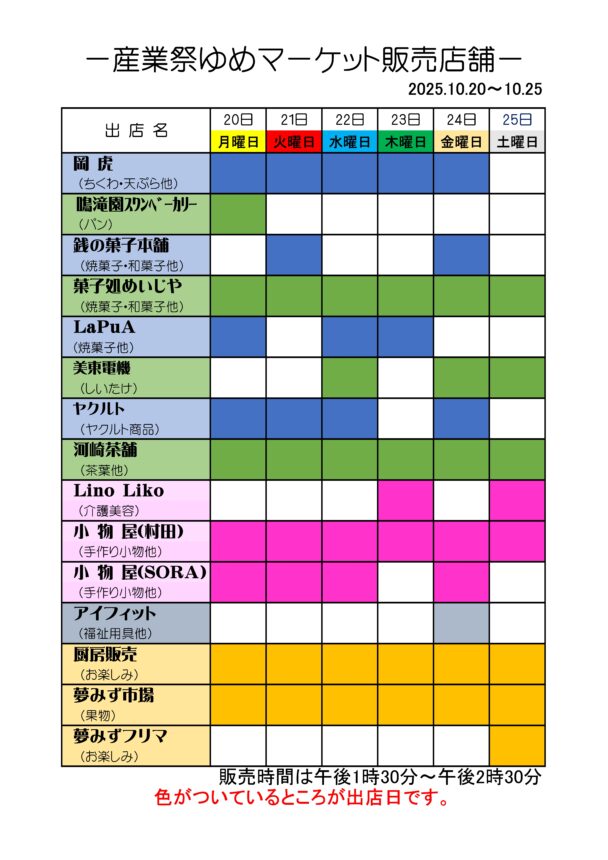 市内外のお店が夢のみずうみ村に「出張販売店」を出されます